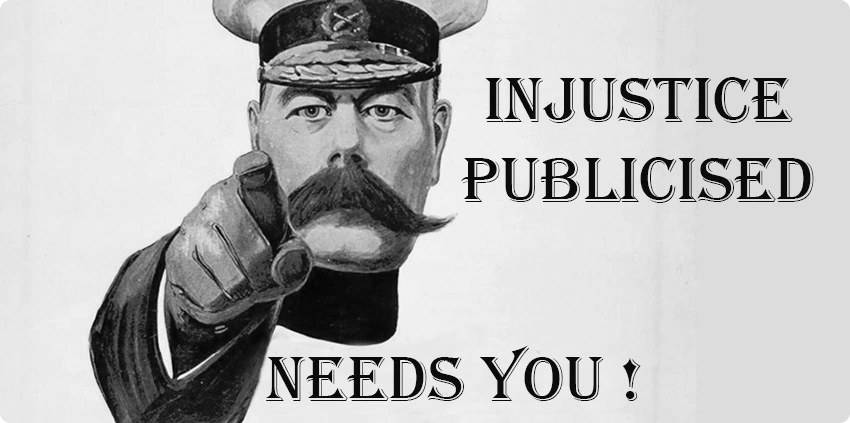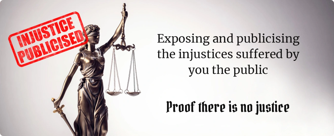 Latest News: Got a story? Suffered an injustice? Need help? We are currently looking for new cases, get in touch today to find out what we can do for you..... Email: help@injustice-publicised.co.uk